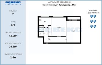 2-к, Культуры проспект, 11 корп. 7 Показать на карте