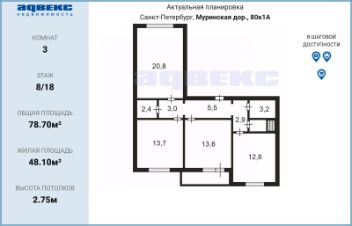 3-к, Муринская дорога, 68 корп. 2 Показать на карте