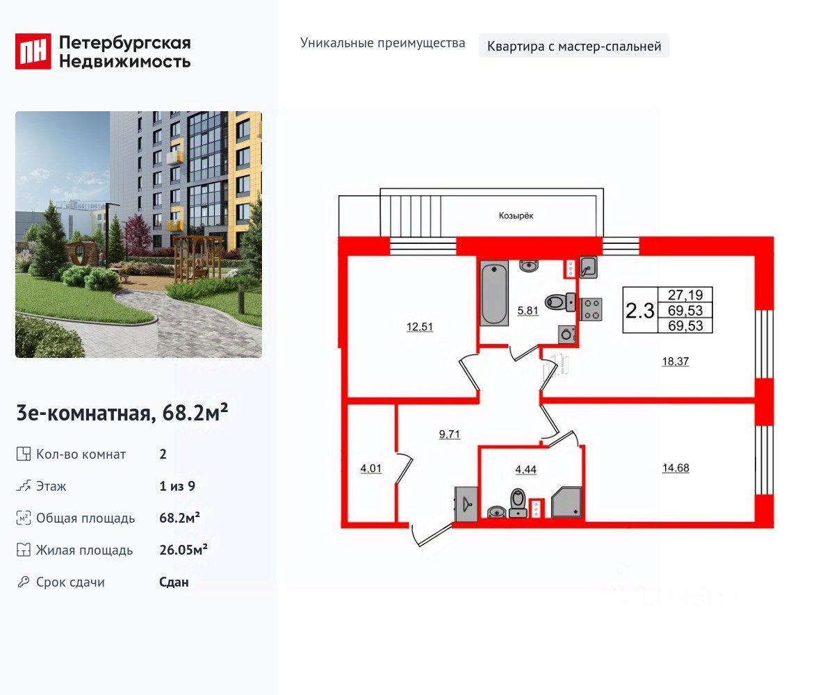 68 м² · Этаж 1 из 9