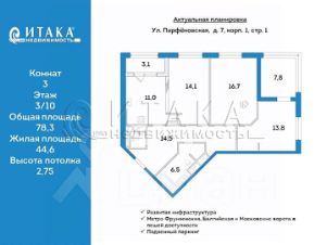Предлагается в покупку уютная евротрешка (по документам 3 комнатная квартира) в ЖK Галактика, общая площадь 72,8 кв.м., расположенная по адресу: г Санкт-Петербург, Парфёновская ул., д. 9, к 1. Рядом с наб. Обводного канала и Московским проспектом, на территории бывшей Варшавской железной дороги. Дом класса комфорт находится сразу в двух районах: Адмиралтейском и Московском.15 минут пешком до метро Московские ворота, Балтийская, Изначально были 3 отдельные комнаты, одну из комнат объединили с кухней. Несущие конструкции не затронуты.Дом монолит с навесным вентилируемым фасадом 2018 г. п., 1 грузовой лифт.Закрытый двор, охраняемая территория, детские площадки, подземный паркинг.Имеется машиноместо в подземном паркинге (отапливаемый).Машиноместо готовы сдать в аренду.Жилая площадь - 40 кв.м., кухня 12,6 кв.м., кладовка 2,5 кв.м., потолки 2,7 м. В квартире остаются встроенные шкафы, кухня, техника: Холодильник, Духовой шкаф, Варочная панель, Посудомоечная машина, по остальной мебели можно обсуждать. Развитая инфраструктура новые школы, детские сады, поликлиники, продовольственные магазины, кафе, рестораны, аптеки, ТК, парки.Собственность более 5 лет, никто не прописан, бeз мaткапитала, взрослые собственники, есть небольшой остаток по ипотеке Сбер Банк (Ипотека будет закрыта перед сделкой за счет собственных средств!)
