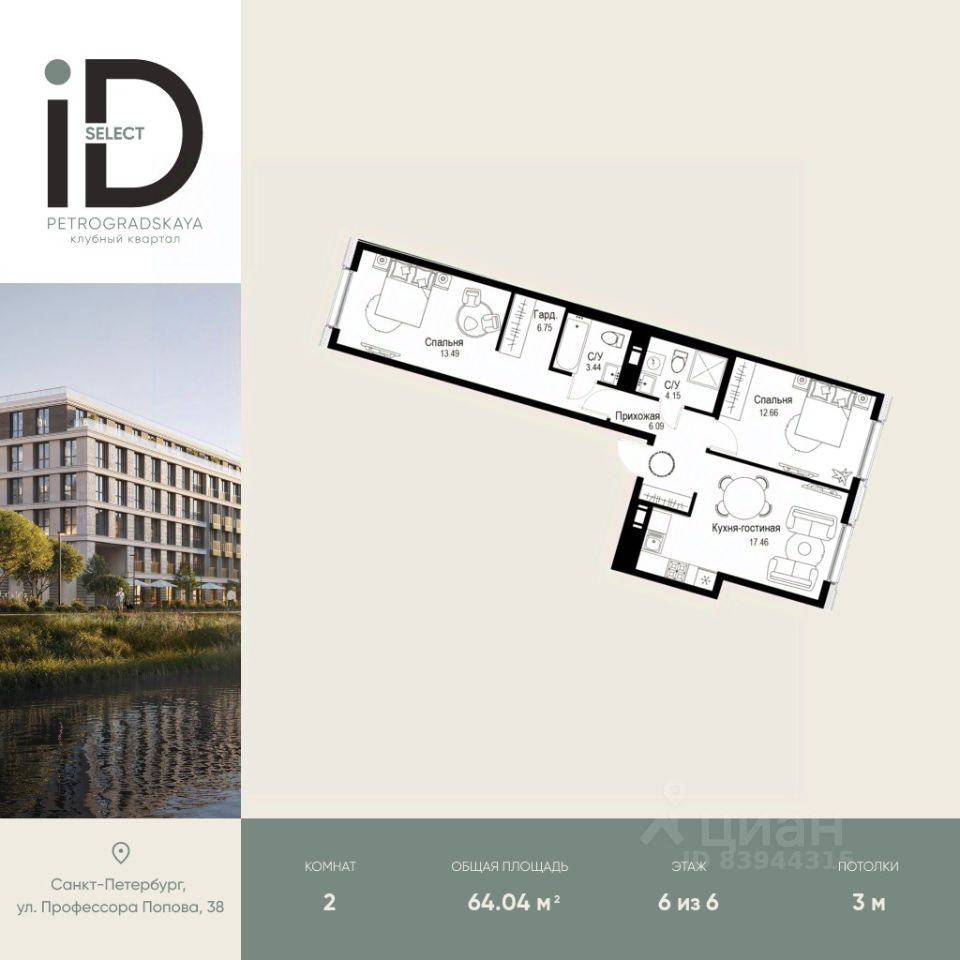 64 м² · Этаж 3 из 6