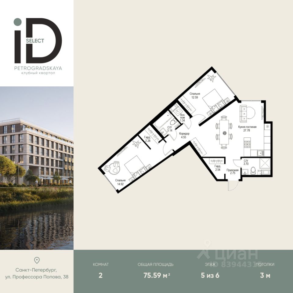 Клубный квартал iD Petrogradskaya на ул. Профессора Попова, 38 объединяет современную архитектуру, удобные планировки и развитую инфраструктуру, предлагая комфортную жизнь в престижном районе Санкт-Петербурга. Из квартир открываются виды на Иоанновский монастырь и реку Карповку. В шаговой доступности три станции метро: ''Петроградская'', ''Чкаловская'' и ''Чёрная речка''. 3-метровые потолки и эксклюзивные планировки создают атмосферу простора и уюта. Внутреннее пространство квартала включает благоустроенные дворы, курдонёры и подземный паркинг. Квартиры площадью от 20 до 136 м² с кухнями-гостиными до 40 м² и террасами с панорамными видами сдаются без отделки, оставляя свободу для индивидуальных интерьерных решений. Рядом ведущие вузы (ЛЭТИ, ИТМО), школы, детские сады, спортивные клубы, Ботанический и Вяземский сады. Удобный выезд на ЗСД, 10 минут до аэропорта Пулково. На территории квартала - кафе, рестораны, медицинские центры, детские и спортивные площадки.