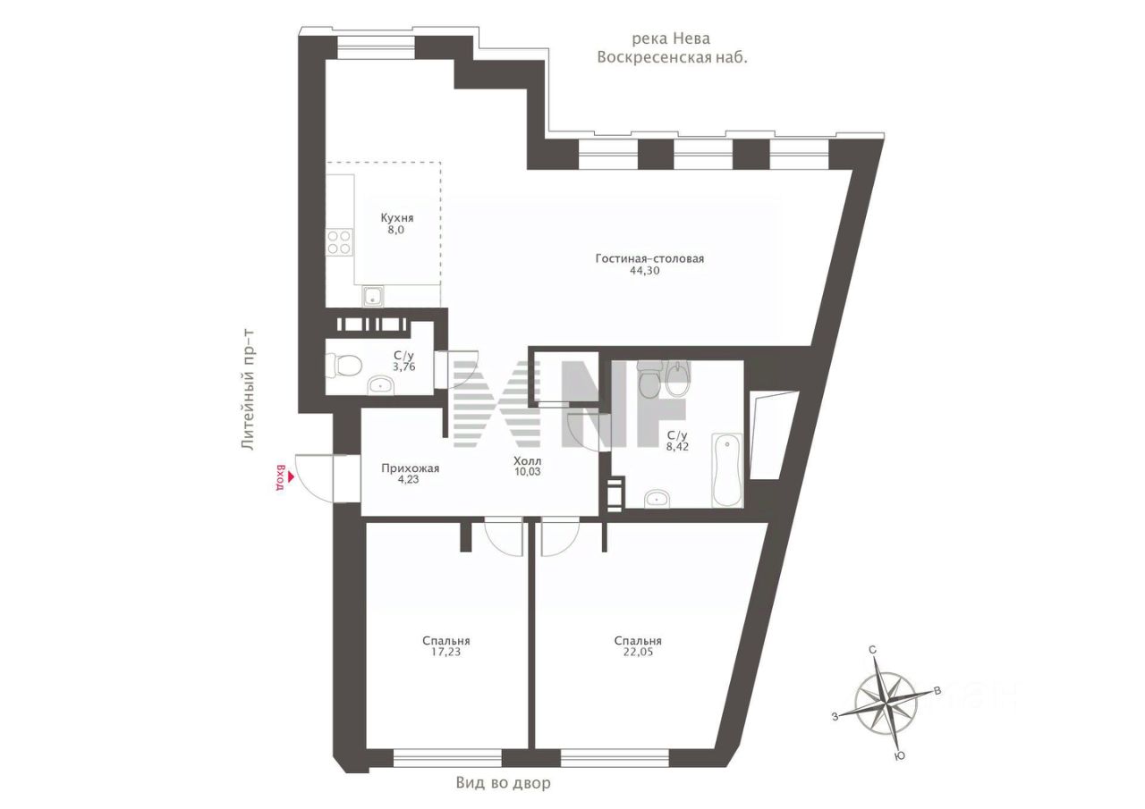 ''Приоритет'' элегантная квартира с видом на акваторию Невы. К продаже предлагается квартира 120.4 кв. м с прямым видом на водную гладь Невы и Петропавловскую крепость. Продуманная планировка квартиры, включает в себя кухню-столовую-гостиную 50 кв.м. с большими окнами, из которых открывается панорамный вид на Неву, исторические памятники архитектуры и парадные гранитные набережные, а также две просторные спальни с окнами в тихий двор и большой ванной комнатой. Структура здания с минимумом несущих элементов внутри квартир позволяет жильцам свободно планировать пространство на свой вкус относится к категории ''Трофейная недвижимость'' это исключительные, коллекционные объекты, у них нет аналогов ни по местоположению, ни по видовым характеристикам, ни по архитектуре, ни по внутренней начинке. Дом расположен на исторической Воскресенской набережной в окружении памятников культуры различных эпох. Рядом с домом парадные набережные, Таврический дворец и Михайловский замок, Летний сад и Эрмитаж, а путь до Невского проспекта составляет 10 минут. Дом объединил в себе все сильные стороны: уникальная локация в самом сердце города и достойное окружение, впечатляющие виды из окон на главные его символы панораму Петропавловской крепости и акватории Невы с ее разводными мостами, статусная неоклассическая архитектура и элегантные интерьеры - в сочетании с передовыми технологиями и инженерией от ведущих производителей, эксклюзивность и приватность в доме всего 40 квартир, полная безопасность, собственная инфраструктура в доме, служба персонального сервиса 24/7 на уровне лучших отелей 5*. Все это создает совершенно новый уровень жизни в центре Северной столицы. Архитектура 7-этажного здания выполнена в стиле неоклассицизма известной студией Intercolumnium. Внешний облик дома соответствует традициям петербургской архитектуры конца 19-го начала 20 веков.