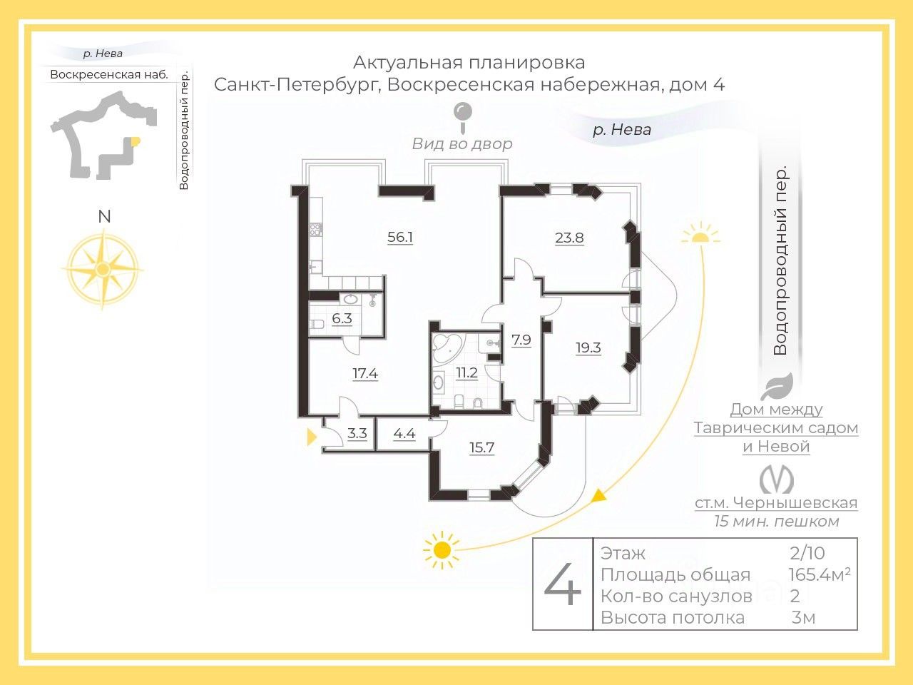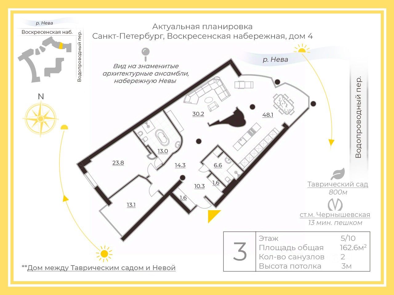 К продаже предлагается квартира на седьмом этаже общей площадью 180,8 кв. м с прямым видом на акваторию Невы. Функциональное зонирование включает в себя кухню-столовую-гостиную 97 кв. м с большими окнами, из которых открывается вид на город и его неповторимые символы: Петропавловский собор, разводной Литейный мост, крейсер ''Аврора'', гранитные набережные, а также две просторные спальни 24 и 28 кв. м с окнами в тихий приватный большой двор. Большие окна и высокие потолки 3,2 м наполняют пространство светом. Структура здания с минимумом несущих элементов внутри квартир позволяет жильцам свободно планировать пространство и реализовать любые дизайнерские решения. Единственная квартира на этаже. ''Приоритет'' - новый клубный жилой дом класса DE LUXE в парадном центре Санкт-Петербурга. Он относится к категории ''трофейная недвижимость'' это исключительные, коллекционные объекты, у них нет аналогов ни по местоположению, ни по видовым характеристикам, ни по архитектуре, ни по внутреннему инженерному оснащению и сервису. Дом расположен на исторической Воскресенской набережной в окружении памятников культуры и архитектуры различных эпох. Дом объединил в себе все сильные стороны: уникальная локация в самом сердце города и достойное окружение, впечатляющие виды из окон на главные его символы панораму Петропавловской крепости и акваторию Невы с ее разводными мостами, статусная неоклассическая архитектура и элегантные интерьеры в сочетании с передовыми технологиями и инженерией от ведущих производителей, эксклюзивность и приватность в доме всего 40 квартир, полная безопасность, собственная инфраструктура в доме, служба персонального сервиса 24/7 на уровне лучших отелей 5*. Все это создает совершенно новый уровень жизни в центре Северной столицы.