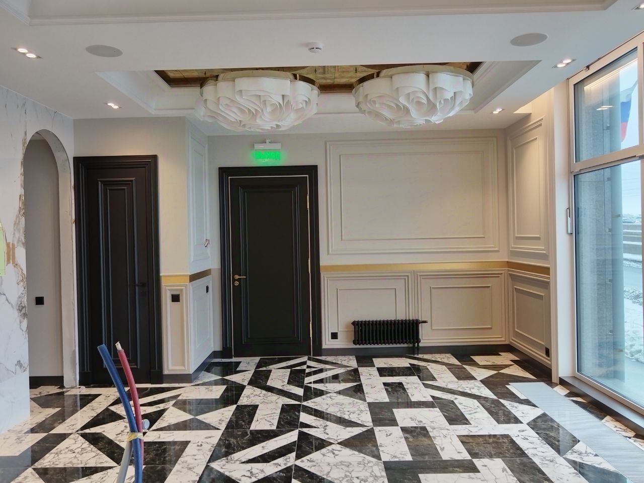 Эксклюзивная резиденция в клубном доме ''Приоритет''. Вашему вниманию предлагается не просто квартира, а готовая резиденция для взыскательных владельцев. Эта уникальная резиденция обладает великолепными видами на разводные мосты и архитектурные доминанты города. Единое двухуровневое пространство (6-й и 7-й этажи) общей площадью 390 кв. м запланировано объединить собственным лифтом и винтовой лестницей. Дизайн-проект уже разработан выдающейся студией ''Галерея 46'', что гарантирует продуманную эстетику и безупречный стиль. Центральное место в публично-гостевом пространстве занимает просторная гостиная-столовая площадью 80 кв. м с мансардными окнами (8 оконных проемов). Здесь также расположены кабинет с прямым видом на акваторию напротив Петропавловской крепости, две детские или гостевые спальни с собственными санузлами, кухня для персонала и зоны для раздачи. Шестой этаж - это приватная часть квартиры, представленная мастер-спальней, отдельной зоной отдыха и раздельной гардеробной комнатой. Кроме того, лот включает в себя три парковочных места в подземном паркинге. Клубный дом ''Приоритет'' находится в самом сердце Санкт-Петербурга, в окружении великолепной архитектуры и богатого исторического наследия. Это не просто жилье, а образ жизни, где каждая деталь подчеркивает высокий статус его обитателей. Клубный дом ''Приоритет'' предлагает своим жильцам ряд ключевых преимуществ, которые делают жизнь здесь поистине комфортной и безопасной. Сервис в этом доме организован на высшем уровне: персонализированная служба работает по принципам лучших 5-звездочных отелей, обеспечивая внимательное отношение к каждому жильцу. Центральное кондиционирование, реализованное с помощью энергоэффективной двухконтурной системы чиллер-фанкойл на оборудовании GUNTNER и YORK, создает идеальный климат в помещениях, позволяя наслаждаться комфортом в любое время года. Вентиляция также одна из лучших: приточно-вытяжная система REMAK с механическим побуждением гарантирует постоянный приток свежего воздуха, что способствует здоровой атмосфере в помещениях дома. Качество воздуха поддерживается благодаря трехступенчатой фильтрации и биологической очистке, что обеспечивает его высокую чистоту. Вода, в свою очередь, проходит через трехуровневую систему очистки с адсорбционными фильтрами и ультрафиолетовым обеззараживанием, что гарантирует ее безопасность и чистоту. Для удобства жильцов предусмотрены четыре бесшумных грузопассажирских лифта SJEC с премиальной отделкой, которые обеспечивают комфортное передвижение по дому. Энергоэффективные бельгийские окна Reynaers с УФ-фильтрацией и звукопоглощением до 42 дБ создают уют и защищают от внешнего шума, что делает проживание еще более приятным. Безопасность жильцов обеспечивается современной IP-видеодомофонной системой и охранным видеонаблюдением высокого разрешения, что создает атмосферу спокойствия и защищенности.