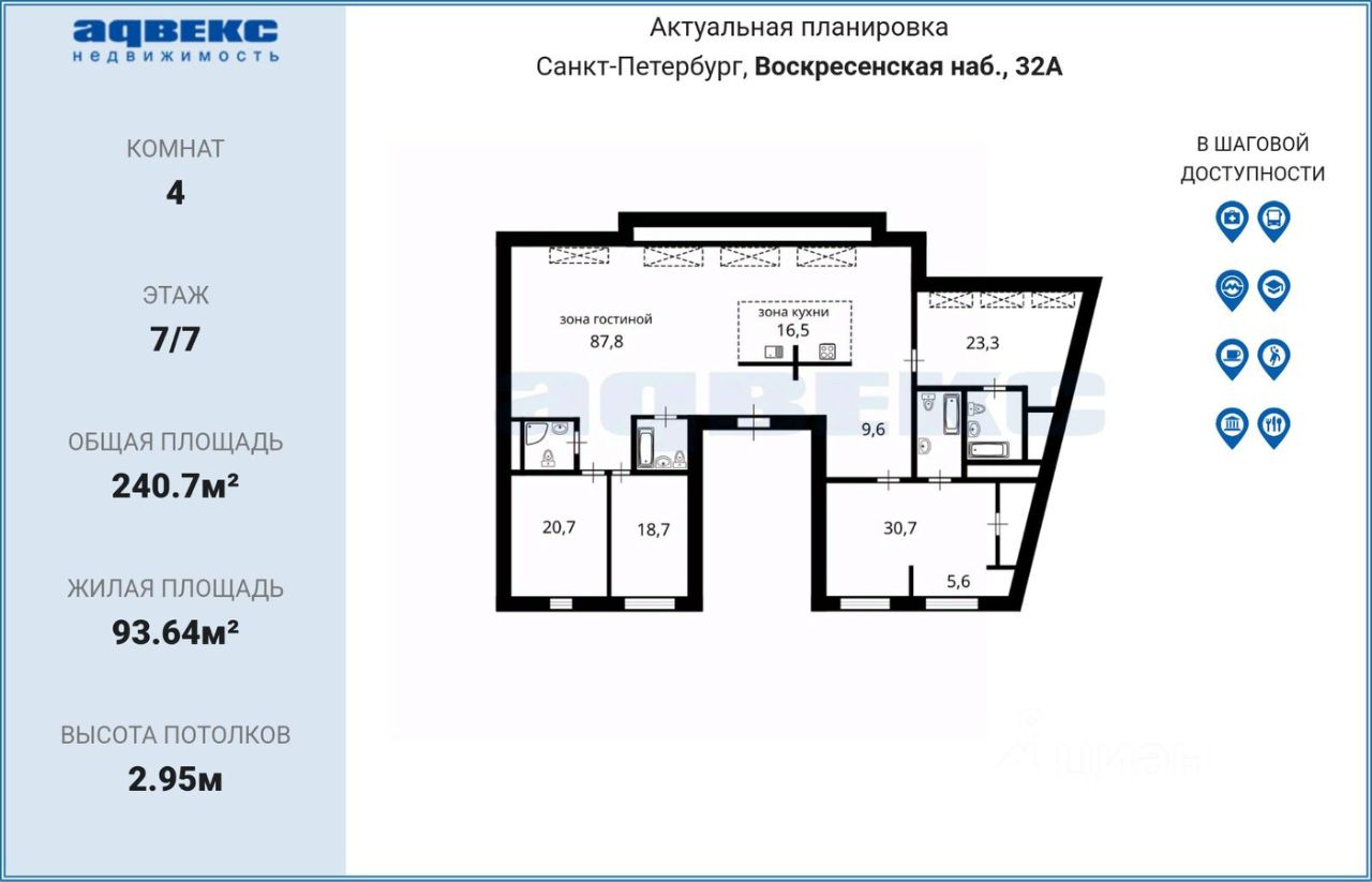 ID: 1916126 Коллекционная недвижимость в самом сердце Санкт-Петербурга! Роскошная квартира 240.7мкв с видом на Неву в новом клубном доме класса DE LUXE на Воскресенской набережной! Прямо здесь и сейчас! Эксклюзивная квартира с индивидуальной планировкой в доме премиум-класса, расположенном на одной из самых престижных набережных Петербурга, с великолепными видами и уникальной архитектурой в духе неоклассицизма. Преимущества предложения: -локация: прямой вид на акваторию Невы, Литейный мост, Петропавловскую крепость, крейсер ''Аврора'', в окружении знаковых достопримечательностей: Летний и Таврический сады, Михайловский замок, Эрмитаж, -планировка и инженерия: Свободная планировка для реализации индивидуального дизайн-проекта, 7 панорамных окна с видом на Неву, 4 окна в кухне-гостиной 87.86мкв и 3 окна в спальне (кабинете) 22мкв, роскошная мастер-спальня с окнами в тихий двор (36.6мкв) с собственным санузлом (6.2мкв) и гардеробной (4.2мкв), Дерево-алюминиевые окна и двери Reynaers с двухкамерными стеклопакетами, шумоизоляция 35 дБ, Коллекторное отопление с терморегуляторами и скрытой разводкой труб в стяжке пола, - атмосфера и интерьеры: всего 40 квартир, по 2 на этаже — максимум уединения, просторное представительское лобби с произведениями искусства, дизайнерской мебелью и мягким освещением, дорогие натуральные материалы в отделке: мрамор, гранит, дерево, декоративное стекло, дизайнерская концепция от бюро Studia54, реализация — студия ICON, - комфорт и безопасность: собственная инфраструктура: лаунж-кафе, фитнес-зал, хамам, сауна, массажный кабинет, салон красоты, гастробар, двухуровневый подземный паркинг на 44 машиноместа, персональный сервис 24/7, повышенная приватность и полная система безопасности, - архитектура: фасад в стиле неоклассицизма от студии Intercolumnium воссоздает исторический облик здания конца XIX — начала XX века, - инженерные системы: высоко экологичная центральная двухконтурная система кондиционирования чиллер-фанкойл на оборудовании YORK и GUNTNER, приточно-вытяжная вентиляция REMAK, трехступенчатая фильтрация, биологическая очистка и биполярная ионизация воздуха, трёхуровневая очистка воды, четыре бесшумных грузопассажирских лифта SJEC с грузоподъемностью до 1000 кг с сенсорным управлением и премиальной отделкой, три индивидуальных тепловых пункта, - возможен заказ отделки квартиры под ключ - транспортная доступность: до станции метро ''Чернышевская'' не более 10 мин, - условия покупки: возможны ипотека, рассрочка. Станьте обладателем редкой элитной недвижимости класса DE LUXE, сочетающий роскошь, эстетику и абсолютный комфорт.