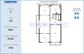 Продаётся уютная квартира площадью 22.2 квадратных метра на втором этаже восьмиэтажного панельного дома, расположенного по адресу: Санкт-Петербург, улица Седова, 150. Дом построен в 1963 году и окружён развитой инфраструктурой: рядом находятся школа, детский сад, парк и фитнес-центр, что делает расположение особенно привлекательным для молодых семей и людей, ведущих активный образ жизни.Жильё располагает косметическим ремонтом, благодаря чему вы сможете сразу же въехать и наслаждаться комфортом без дополнительных вложений. Санузел в квартире совмещённый, что является удобным решением для экономии пространства. Окна квартиры выходят как на улицу, так и во двор, предоставляя приятный вид и достаточное количество естественного света.Для маленьких жителей двора оборудована детская площадка, где дети смогут безопасно играть и веселиться. Также во дворе предусмотрена парковка для вашего автомобиля.Расположение дома позволяет быстро добраться до ближайших станций метро Пролетарская и Ломоносовская, расстояние до которых составляет всего 1.6 километра, а пешком путь займёт около 18 минут. Это обеспечивает удобный доступ к другим районам города и значительно экономит время при передвижении по Санкт-Петербургу.Приглашаем вас оценить все преимущества данной квартиры лично! Она ждёт своих новых владельцев, готовых наполнить её теплом и счастьем.