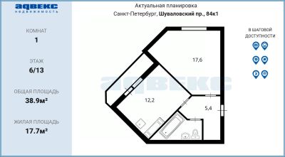 2-к, Шуваловский проспект, 51 корп. 3 Показать на карте