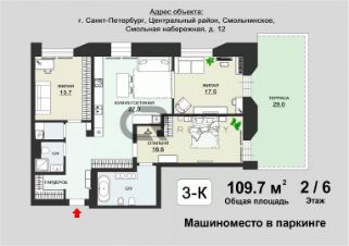 3-к, Смольная набережная, 12 Показать на карте