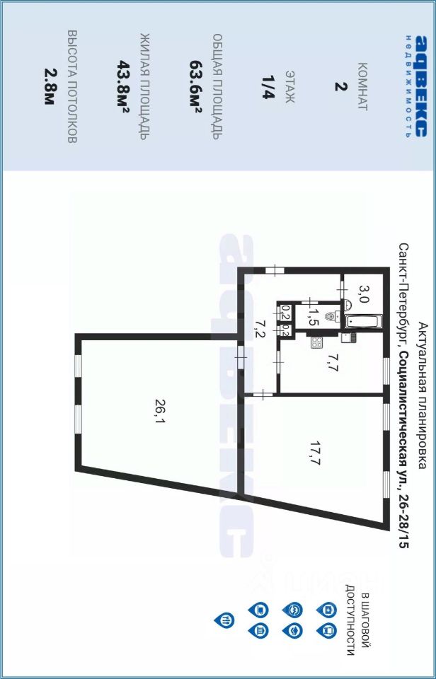 Отличная квартира в самом центре Санкт-Петербурга! ДОЛЯ — КОММЕРЧЕСКОЕ ПОМЕЩЕНИЕ Подойдет как для инвестиций, так и для постоянного проживания. Собственность долевая, всего три соседа — все вежливые и адекватные собственники. Арендатор уже имеется, но в такой локации поиск нового жильца или арендатора не займет много времени. Помещение имеет статус нежилого, поэтому прописаться здесь нельзя. Зато сдавать в аренду — в том числе под офис — абсолютно законно! Адрес: Социалистическая улица, дом 16 (5 минут пешком до м. ''Звенигородская''). История и архитектура дома: Здание возведено в 1930-е годы и является ярким примером архитектуры в стиле конструктивизм. Исторический контекст: дом строился в период расцвета конструктивизма, когда функциональность и утилитарность выходили на первый план в советской архитектуре. Современное состояние: здание хорошо сохранилось, сохраняя ценность для понимания градостроительных тенденций 1930-х годов. Код пользователя: 123328 Номер в базе: 9904267