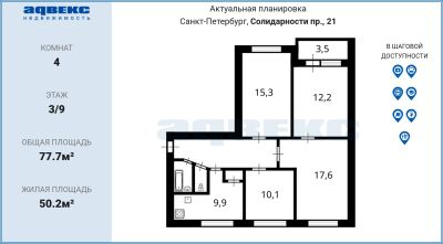 2-к, Солидарности проспект, 10 корп. 1 Показать на карте
