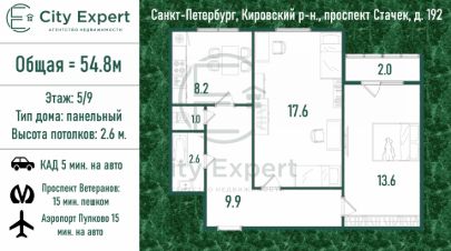 Продаётся уютная двухкомнатная квартира площадью 55.7 квадратных метров на десятом этаже семнадцатиэтажного кирпичного дома, расположенного по адресу: Санкт-Петербург, Красненькая речка, Стачек проспект, 101 к1 литера Г.Жилая площадь составляет 31.4 квадратных метра, что позволяет комфортно разместиться семье. Кухня площадью 6.6 квадратных метров станет местом для приятных семейных ужинов. Евроремонт, выполненный в квартире, добавляет ей особый шарм и создает атмосферу уюта. Раздельный санузел обеспечивает дополнительное удобство для жильцов. Балкон остеклен, открывает приятный вид на улицу, где можно наслаждаться чашкой кофе на свежем воздухе.Для маленьких жителей во дворе установлена детская площадка, а кодовая дверь на входе в подъезд гарантирует безопасность проживания. Район обладает развитой инфраструктурой: в шаговой доступности расположены школа, детский сад, торговый центр ''Континент'', кинотеатр, парк и фитнес-клуб, бассейн, кафе, рестораны, фудкорт, развлечения для всей семьи. Рядом также находятся студии красоты, такие как Матрешка и ПурПур, где можно привести себя в порядок и зарядиться хорошим настроением.Эта квартира станет идеальным выбором для тех, кто ценит комфорт, уют и качество жизни. Станция метро Автово 1 остановка на общественном транспорте либо 15 минут пешком, скоро открытие ещё одной станции метро рядом. В собственности более 5 лет, в ДКП полная стоимость, собственники два взрослых человека. Организуем показы по договорённости. Всегда рады видеть вас, до встречи!