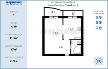 ID: 1914173 Просторная 1-комнатная квартира в кирпичном доме с видом на зеленый сквер Ваш идеальный выбор!Мечтаете о комфортной жизни в тихом и зеленом районе, но при этом с удобной транспортной доступностью? Тогда эта квартира для вас!Представляем вашему вниманию просторную, светлую и очень теплую 1-комнатную квартиру общей площадью 41.5 кв.м. в добротном кирпичном доме.Преимущества дома и территории:* Надежность кирпичного дома: Гарантия тепла, отличной звукоизоляции и долговечности.* Безопасность и приватность: Закрытая территория с магнитными ключами, видеонаблюдением и консьержем.* Комфорт проживания: Благоустроенный двор с зонами отдыха и парковочными местами.* Автономное отопление: Собственная котельная обеспечивает тепло и экономию на коммунальных платежах.О квартире:* Простор и функциональность: Общая площадь 41.5 кв.м., включая: * Уютную комнату 17 кв.м. * Просторную кухню 12.7 кв.м. идеальное место для кулинарных шедевров. * Два больших застекленных балкона(+дополнительных 7,6 кв.м с теплым полом), станут вашими любимыми местами для отдыха. * Просторный холл и большой санузел с гидромассажной ванной для полного релакса.* Свет и тепло: Окна выходят на юго-западную сторону, обеспечивая максимум солнечного света в течение всего дня.* Высокие потолки 2,76м создают дополнительный обьем.* Охранная сигнализация обеспечит вам безопасность.* Идеальное состояние: Квартира полностью готова к проживанию! Вас ждут качественный ремонт, добротная мебель и вся необходимая бытовая техника. Это предложение для тех, кто ценит комфорт и не хочет тратить время на ремонт.* Вид на зелень: Комфортный 4 этаж с окнами, выходящими на тихий и живописный Сад Ткачей. Наслаждайтесь спокойствием и красотой природы прямо из окна.Расположение и инфраструктура:* Транспортная доступность: Всего 7 минут пешком до метро Елизаровская, быстрый выезд на КАД, близость до центра города.* Зеленый и тихий район: Идеальное место для спокойной жизни, вдали от городской суеты.Юридическая чистота:* Прямая продажа: Быстрый выход на сделку.* Один собственник.* В собственности более 10 лет.Эта квартира прекрасная возможность создать свой уютный уголок, где гармонично сочетаются комфорт, тишина и удобство расположения.Не упустите свой шанс! Звоните прямо сейчас, чтобы договориться о просмотре!