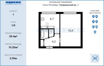 ID: 1915629Продается компактная 1-комнатная квартира в шаговой доступности от ст. метро Проспект Большевиков-пешком 10 минут, можно проехать 1 остановку на трамвае.Предложение интересно, как для инвестиции, так и для личного проживания. О квартире:расположена на 1-м этаже 9-этажного домаплощадь 29.4кв.мкомната 15.25кв.м, правильной квадратной формы, с большим окном. очень удачно расположена дверь- за ней остается место на большой шкаф, оставляя пространство комнаты свободным.окно выходит во двор с большим количеством зелени. В панораме обзора детский сад.в квартире тихо и спокойно.Ремонт давнего времени, чисто и опрятно. О доме:Панельный, 1975 г.п.чистая парадная с красивым плиточным полом.лифт расположен напротив квартирпод окнами широкий газон, зелень скрывает окна от посторонних глаз Развитая инфраструктура района обеспечивает жителей всем необходимым- от различных магазинов до детских образовательных учреждений.О сделке:Один взрослый собственник, срок владения с 1994г, обременений, несовершеннолетних детей нет, соц. выплаты не использовались. в квартире никто не прописан, полная цена в договоре. Возможна ипотека. ПОКУПАТЕЛЮ БЕЗ АГЕНТА-ЮРИДИЧЕСКОЕ СОПРОВОЖДЕНИЕ СДЕЛКИ В ПОДАРОК!Приходите на просмотр, увидеть все своими глазами!