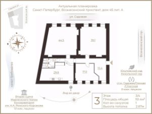 1698215 В продаже просторная квартира, которая может стать как представительской, так и квартирой для большой семьи!Цена актуальна до 31.12.2025 г.!__________Супер место: - 100 метров до набережной канала Грибоедова- 3 минуты пешком до Юсуповского сада и Юсуповского дворца- 5 минут до Никольского морского собора и Мариинского театра- 7 минут прогулочным шагом до Исаакиевской площади, Новой Голландии, Медного всадника и Адмиралтейства.- 15 минут до Дворцовой площади, Эрмитажа и Казанского собора__________Транспорт: - 12 минут до пересадочного узла, станции метро ''Сенная площадь'', ''Садовая'', ''Спасская'' + много маршрутов наземного общественного транспорта__________Социальная инфраструктура:- поликлиники- детские сады- школы и гимназии- кружки и секции- высшие учебные заведения- спортивные клубы и бассейны__________Аптеки, парикмахерские, салоны красоты и стоматологии.__________Сетевая продуктовая розница ''ВкусВилл'', ''Глобус Гурме'' и ''Азбука вкуса'' и т.д.Рядом Невский проспект — бутики и салоны, рестораны авторской кухни, художественные галереи и всё, что душе угодно.__________Параметры квартиры: - площадь 213 м²- потолки 3,73 м!- второй этаж- окна на три стороны, из них семь арочных на фасад!- два входа/парадный и чёрный- два камина ___________Дом:- доходный дом Шклярского - стиль: неоренессанс- просторный закрытый двор со своим парковочным местом- межэтажные перекрытия: деревянные балки + кирпичные своды по стальным балкам__________Капитальный ремонт, перекрытия и сети: - система водоотведенияя 2007 г.- кровля 2014 г.- электроснабжение 2007 г.- система теплоснабжения 2009 г.- система водоснабжения 2009 г.___________Звоните! Договоримся о просмотре.