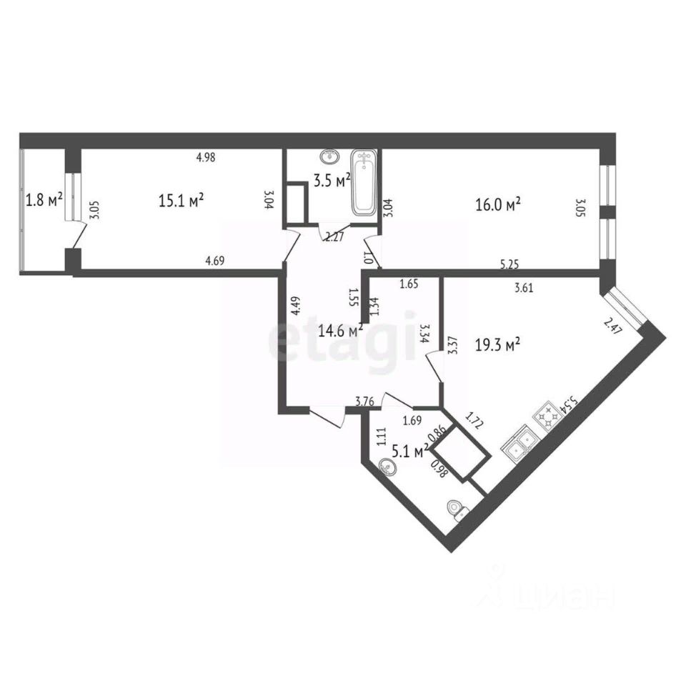 98 м² · Этаж 7 из 19
