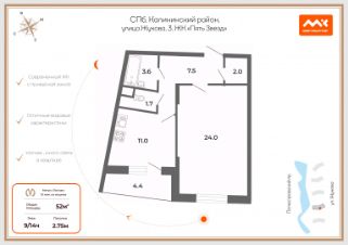 Арт. 127517840 Прямая продажа. Без обременений и перепланировки. Полная стоимость в дкп. Приобретали без использования мат. капитала. В собственности более 5 лет. Предлагается к продаже видовая стильная однокомнатная квартира 49,6 кв.м. ( 51,7 кв.м. с застекленной лоджией) в новом комплексе бизнес-класса 2018 г.п. от застройщика ''Теорема'' в Калининском районе по адресу: улица Жукова, дом 3. Вид из окон квартиры- на озера и парковую зону. Проект ЖК ''Пять Звезд'' разработан немецким бюро NPS Tchoban Voss, что говорит о европейском качестве архитектуры. Фасады домов облицованы прочными алюминиевыми панелями, изготовленными в Голландии с применением технологий авиационной промышленности. Каждый дом отличается индивидуальным цветовым решением.Жилой комплекс ''Пять звезд'' - это закрытое благоустроенное пространство. Управляющая компания ''Теорема'' устроила:детские игровые площадки,зоны для отдыха и занятий спортом - прямой выход с территории комплекса к озеру и скверу Безбородко,большая часть площади отведена под озеленение,по периметру - охрана, видеонаблюдение. в каждом корпусе свой консьерж.подземный паркинг (спуск с лифта, есть возможность приобрести машиноместо или снять в аренду).В нескольких шагах от бизнес-комплекса находятся: школы (139, 198, 10 и пр.), детсады (32, 27, 30), поликлиника 54, БЦ ''Бенуа'', БЦ ''Зима'', БЦ ''Осень'' и многое пр. Рядом Полюстровский парк и сад Нева.До ближайшей станции метро ''Площадь Ленина'' - 10 минут на машине. До Свердловской набережной всего 400 метров. До центра Петербурга по набережным Невы можно добраться за считанные минуты. Поездка до КАД занимает всего 10-15 минут.В квартире выполнен качественный евроремонт. Планировка - спальная комната правильной формы 24 кв.м., кухня 10,8 кв.м, раздельный санузел, гардеробная комната, застекленная лоджия 4,2 кв.м. Высокие потолки и большие окна создают ощущение света и воздуха. Квартира продается с мебелью и техникой.Звоните, будем рады ответить на Ваши вопросы.