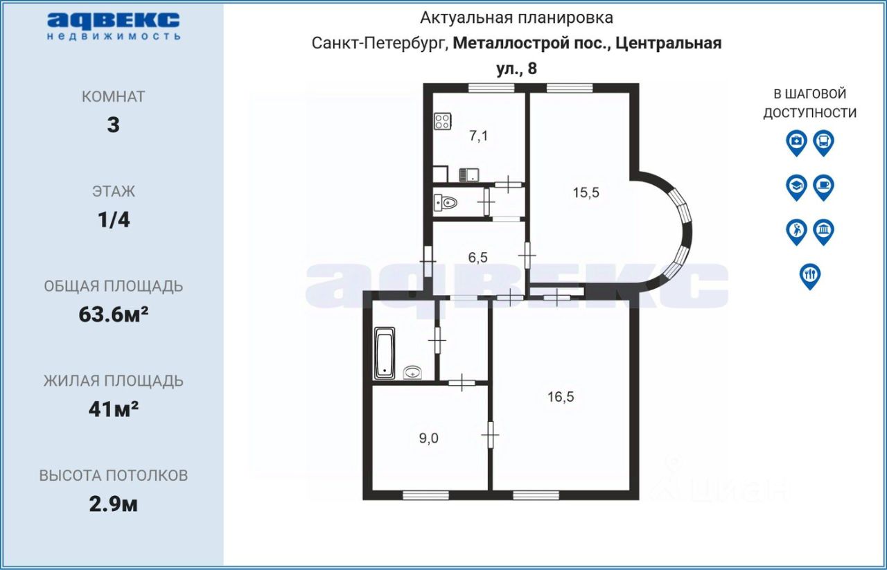 Продаётся уютная трехкомнатная квартира площадью 79 квадратных метров на третьем этаже четырехэтажного кирпичного дома, расположенного по адресу: Санкт-Петербург, Металлострой, Центральная улица, 11. Дом построен в 1950 году и окружён зелёными дворовыми территориями, где расположены детская и спортивная площадки прямо у подъезда, что делает его идеальным выбором для семей с детьми. Двухсторонняя.Вид из окна-на фонтан и площадь.У дома остановка общественного транспорта.7 минут пешком до электрички. Просторная кухня площадью 10 квадратных метров станет любимым местом для семейных завтраков и ужинов. Квартира оснащена всем необходимым, включая проведённый газ, что гарантирует комфортное проживание новым владельцам. Благодаря разнообразию заведений рядом с домом, жители могут наслаждаться приятными прогулками до соседнего кафе и ресторана Код-бар, а также пользоваться услугами местного магнита и минимаркета для ежедневных покупок. Для поддержания ухоженного внешнего вида всегда можно обратиться в соседнюю парикмахерскую или салон красоты Бробрей. Без обременений. Прямая продажа.