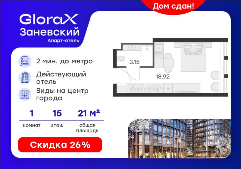 1-комн. апартаменты-студия от застройщика с отделкой в ЖК ''Ladozhsky AVENIR'' на 14 этаже. Общая площадь: 24.22 кв.м., площадь гостиной 20.16 кв.м., из которых 5 кв.м. выделено под кухонную зону. Все окна выходят на одну сторону. В апартаментах один совмещенный санузел. Высота потолков 2.7 м. Апартаменты находятся в корпусе 1. Дом монолитный, одноподъездный, высотой 14 этажей. На этаже 50 квартир. В подъезде 4 пассажирских и 4 грузовых лифта. В шаговой доступности от дома имеются станции метро (расстояние по прямой): ''Ладожская'' (800 м), ''Новочеркасская'' (1.7 км), также недалеко от этого корпуса находятся станции метро: ''Площадь Александра Невского'', ''Чернышевская'', ''Площадь Восстания''. Тест-драйв в готовых апартаментах. Перед покупкой можно арендовать номер для проживания с компенсацией от застройщика. Ladozhsky AVENIR — апартотель бизнескласса в историческом районе Матросская слобода на Правобережье Невы в 10 минутах пешком от станции метро ''Ладожская'' и 10 минутах на автомобиле до Невского проспекта.Апартотель Ladozhsky AVENIR — четвертый проект сети сервисных апартотелей AVENIR и первый мультиформатный проект, включающий в себя апартаменты, офисы и коммерческие помещения. Относится к высокому сегменту ''Бизнес - класс''Все апартаменты сдаются с отделкой ''под ключ'' в единой стилистике. Семейная ипотека на апартаменты не распространяется.Деятельность по сдаче апартаментов в аренду осуществляет управляющая компания PSK INVEST, входящая в группу компаний ''ПСК''.Для передачи апартамента в управление PSK IINVEST необходимо заключить договор на приобретение пакета ''Меблировка и оснащение''. #2MbMbM