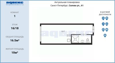 ID: 1914041Предлагаются к продаже студийные апартаменты в апарт-комплексе ''VALO'', расположенном в Фрунзенском районе Санкт-Петербурга по адресу ул. Салова, 61. Объект находится в непосредственной близости от станции метро ''Бухарестская'', что обеспечивает удобную транспортную доступность.Площадь апартаментов составляет 16,5 квадратных метров. Помещение расположено на 16-м этаже 18-этажного монолитного дома, построенного в 2022 году. Внутри выполнен евроремонт, имеется совмещённый санузел. Апартаменты продаются с мебелью и встроенной техникой, что позволяет сразу же приступать к эксплуатации или сдаче в аренду.Здание представляет собой современный монолитный дом с подземной парковкой. Комплекс предусматривает широкий спектр услуг на уровне гостиничного сервиса: круглосуточный ресепшен, химчистку и прачечную, клининг, ресторан и room service, гостиницу для домашних животных, фитнес-клуб с профессиональными тренерами, гастрономический бутик, салон красоты и детскую комнату. Управление апарт-комплексом осуществляет собственная управляющая компания, что обеспечивает профессиональный подход к обслуживанию клиентов и поддержку владельцев.Расположение комплекса удобно как для проживания, так и для инвестиций: несколько минут пешком до метро ''Бухарестская'', близость главных транспортных магистралей, а также развитая инфраструктура района. До центра города можно добраться примерно за 15-20 минут.Продажа осуществляется по прямому договору, без обременений. Документы готовы, возможен быстрый выход на сделку. Стоимость объекта составляет 5 165 000 рублей. Рассматривается возможность приобретения в ипотеку.