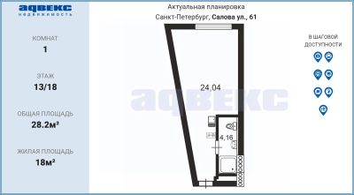 Код объекта: 1948346.Описание объекта:На улице Салова, 61 в Санкт-Петербурге продаётся студия в кирпично-монолитном доме, построенном в 2019 году. Квартира расположена на 15 этаже 18-этажного дома и имеет общую площадь 23,8 кв. м, из которых 20,1 кв. м — жилая площадь. Студия не находится под управлением и не обременена договором с Управляющей компанией ВАЛО. Апартамент покупался для собственного проживания, в аренду не сдавалась. Преимущества:Выгодная цена: это предложение станет настоящей находкой для тех, кто ищет доступное жильё в хорошем районе. Удобное расположение: дом находится в районе с развитой инфраструктурой. Рядом есть всё необходимое для комфортной жизни: магазины, аптеки, школы, детские сады. Благодаря хорошей транспортной доступности можно быстро добраться до любой точки города, метро Бухарестская находится через дорогу, до центра 4 станции метро. Качественный ремонт: в квартире сделан косметический ремонт, который позволит новым владельцам сразу заселиться и наслаждаться комфортом. Развитая инфраструктура: в радиусе 1000 метров от дома расположены крупные магазины, супермаркеты, места отдыха и центральные улицы. Рядом есть медицинские центры, спортивные клубы и другие значимые объекты инфраструктуры, Торговый Комплекс Континент, Перекресток 24/7.Дополнительная информация:Материал перекрытий: монолитные. Отопление: центральное. Парковка: подземная. Количество совмещённых санузлов: 1. Количество балконов и лоджий: 0.Эта квартира станет отличным выбором для молодых специалистов, студентов, бизнес-профессионалов и инвесторов. Не упустите шанс стать владельцем комфортного жилья в одном из лучших районов Санкт-Петербурга!Позвоните нам прямо сейчас, чтобы узнать больше и записаться на просмотр.Мы гарантируем безопасную сделку и юридическую поддержку нашим Клиентам. Поможем одобрить ипотеку с сниженной ставкой.