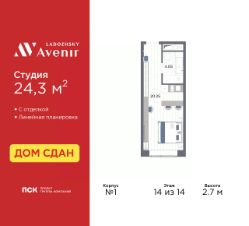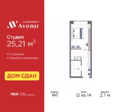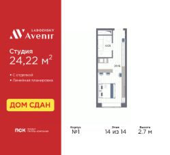 Продаются однокомнатные апартаменты-студия с отделкой в ЖК ''Ladozhsky AVENIR'' на 14 этаже. Общая площадь: 24.22 кв.м., площадь гостиной 20.16 кв.м., из которых 5 кв.м. выделено под кухонную зону. Все окна выходят на одну сторону. В апартаментах один совмещенный санузел. Высота потолков 2.7 м. Апартаменты находятся в корпусе 1. Дом монолитный, одноподъездный, высотой 14 этажей. На этаже 50 квартир. В подъезде 4 пассажирских и 4 грузовых лифта. В шаговой доступности от дома находятся станции метро (расстояние по прямой): ''Ладожская'' (800 м), ''Новочеркасская'' (1.7 км), также недалеко от этого корпуса находятся станции метро: ''Площадь Александра Невского'', ''Чернышевская'', ''Площадь Восстания''. Тест-драйв в готовых апартаментах. Перед покупкой можно арендовать номер для проживания с компенсацией от застройщика. Ladozhsky AVENIR — апартотель бизнескласса в историческом районе Матросская слобода на Правобережье Невы в 10 минутах пешком от станции метро ''Ладожская'' и 10 минутах на автомобиле до Невского проспекта.Апартотель Ladozhsky AVENIR — четвертый проект сети сервисных апартотелей AVENIR и первый мультиформатный проект, включающий в себя апартаменты, офисы и коммерческие помещения. Относится к высокому сегменту ''Бизнес - класс''Все апартаменты сдаются с отделкой ''под ключ'' в единой стилистике. Семейная ипотека на апартаменты не распространяется.Деятельность по сдаче апартаментов в аренду осуществляет управляющая компания PSK INVEST, входящая в группу компаний ''ПСК''.Для передачи апартамента в управление PSK IINVEST необходимо заключить договор на приобретение пакета ''Меблировка и оснащение''. Аккредитация в банках: ПАО Банк ''ВТБ'', ''Сбербанк России'', ПАО ''Банк Уралсиб'', ПАО АКБ ''Абсолют Банк'', ПАО ''Совкомбанк'' и других. #zsvgu9