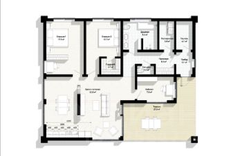 Двухэтажный жилой дом площадью 203,3 м2 на земельном участке площадью 13,65 соток, оборудован крыльцом и большой террасой, на первом этаже автономная котельная, помещения под большую кухню-гостиную, спальню или кабинет, санузел, предусмотрено место для установки камина, на втором этаже помещения под четыре спальни и санузел. Проект дома отличается особой привлекательностью за счет двух террас и выведенной снаружи каминной трубы.Фундамент плита 300мм, Стены газобетон D 500 400мм, Перекрытия железобетонная пустотная плита 220 мм, Окна пластиковые, двухкамерные, энергосберегающие, Кровля металлочерепица Коттеджный поселок ''Петергоф Сити'' построен в уникальном месте с точки зрения транспортной доступности, всего в 20 минутах от города и имеет свой собственный съезд с КАД. В ближайшей доступности расположены школы и детские сады, расположенные в Петергофе и д. Низино. В поселке построено и введено в эксплуатацию 73 коттеджа. Все коттеджи двухэтажные, площадь от 160 до 245 кв.м., площадь земельных участков от 12 до 15 соток. Городские магистральные и инженерные сети, водоснабжение и водоотведение, электроснабжение и газ, Все дома построены в единой архитектурной концепции. Охраняемая территория.