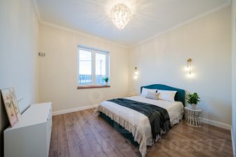 Двухэтажный жилой дом со встроенным гаражом и отделкой и мебелью ,площадью 245 м2 на земельном участке площадью 15 соток, на первом этаже автономная котельная, помещение под санузел, спальню или кабинет, большую кухню-гостиную с эркерами, на втором этаже помещения под три спальни, санузел, большой холл с выходом на балкон.