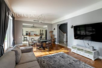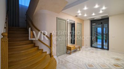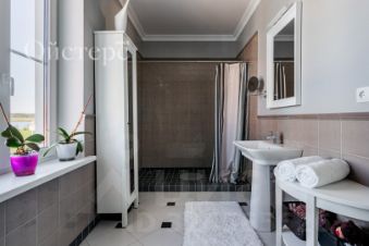 В закрытом коттеджном поселке класса ''люкс'' предлагается к продаже дом в стиле барокко. Участок на первой береговой линии со своим выходом к воде. Клубный статус поселка предполагает однородное социальное окружение и единую архитектурную стилистику домов, круглосуточную охрану и видеонаблюдение. Коттеджный посёлок находится на берегу 2-го Ждановского озера, где жители посёлка смогут приятно провести время с семьей, прогуливаясь или отдыхая на берегу. Для жителей предусмотрена детская и спортивная площадки, гостевая парковка. Реализован проект футбольного и волейбольного полей. Все коммуникации центральные: водоснабжение и водоотведение, электрообеспечение от 10 до 15 кВт на жилой дом, центральное газоснабжение, благоустроенная 2-х полосная асфальтированная дорога внутри коттеджного посёлка с выездом на основную трассу в Санкт-Петербург и Всеволожск. Дом расположился на участке 35 соток и поставлен таким образом, что все самые лучшие виды на лесную чащу, а также водную гладь озера, открываются из спален и с большой террасы, которая расположилась на втором этаже, ее размеры достигают 70 кв. м, что позволяет организовывать там полноценный летний отдых. На первом этаже дома расположены: кухня-столовая с панорамными окнами, гостиная, одна спальня со своим гардеробом и два санузла. На втором этаже дома: три спальни, два санузла, гардероб и балкон с выходом на него из двух комнат. В данный момент в доме ведутся активные работы по выполнению косметического ремонта, которые будут закончены уже к концу этого года. Готовый для проживания дом с дизайнерским ремонтом и прекрасным видом в безопасном, закрытом, клубном поселке.Коттеджный посёлок находится в 10 км от КАД и в 3 км от центра Всеволожска. В 5 минутах от поселка находится супармаркет ''Лента'', шиномонтаж и мойка. Всего пять минут от поселка до железнодорожной станции Мельничный ручей, 1 км от школы и садика.