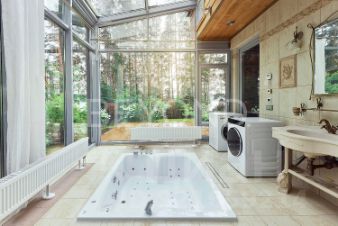 Предлагаем вашему вниманию домовладение на первой береговой линии Суходольского озера, в окружении соснового бора. Здесь царит атмосфера спокойствия и гармонии с природой, идеально для тех, кто ценит комфорт и уединенность. На участке площадью 42,5 сотки расположился основной дом 697 кв. м, гостевой дом 108 кв. м, гараж на три автомобиля, летняя баня с чаном для купания, зона барбекю. Здесь есть все для семейного отдыха и личного пространства. Дом выполнен из экологически чистых материалов: стены возведены из высококачественного клееного бруса, внутренние поверхности отделаны натуральным кедром и пропитаны пчелиным воском. Комнаты оборудованы теплыми водяными полами, покрытыми натуральной дубовой массивной доской и клинкерной плиткой, создающими уют и тепло в любое время года. Потолки высотой 6 метров и панорамные окна открывают захватывающий вид на природу, подчеркивают объем и создают ощущение свободы. Планировкой дома предусмотрены большие пространства помещений: зимний сад 83 кв. м, кухня-столовая и гостиная с камином, общей площадью 190 кв. м, Каждая спальня оснащена ванной комнатой с панорамными окнами. Участок оснащен современной дренажной системой, зеленым газоном и подготовлен для автоматического полива, мощение выполнено качественной клинкерной брусчаткой производства ЛСР. Ландшафтный дизайн и разнообразие плодовых и декоративных растений удовлетворит самых требовательных клиентов, а садовый фонтан наполнит воздух освежающей прохладой. Коммуникации: электричество составляет 30 кВт, обеспечено подключение газа, воды и канализации центрального типа, установлено оптоволокно. Внутреннее устройство дома оснащено системой климат-контроля. Расположение коттеджного посёлка ''Суходольское'' поистине уникально. Он находится на берегу самого большого из озёр Карельского перешейка озере Суходольское. На территории поселка, граничащей с природным заповедником, сохранен уникальный холмистый ландшафт с перепадом высот более чем в 16 метров, природный ручей, вековые корабельные сосны, небольшое внутреннее озеро с рыбой. Построены детская и спортивная площадки, теннисный корт, оборудованы прогулочная зона, благоустроенный песчаный пляж и охраняемый пирс для водного транспорта. Расстояние от Санкт-Петербурга до поселка по трассе — 98 км.За объект внесён задаток.