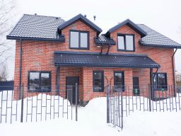 Дом построен из сухого профилированного бруса 70*145, собранный по технологии двойная стена с заполнением теплоизоляционным материалом эковата. Покрашен по финской технологии финской краской Tikkurila. Кровля - металлочерепица, фундамент - свайный с ростверком. Окна пластиковые - двойные стеклопакеты. Кадастровый номер участка 47:07:1045005:520, кадастровый номер дома: 47:07:1045005:1560. Дом подключен к газу, воде, электричеству 15 кВт. В посёлке есть оптоволоконный интернет. На 1-м этаже большая комната с залом и местом под камин, спальная (или веранда), большая газовая котельная, в которой можно разместить стиральную машину и т.п.. Есть сауна, зона отдыха у сауны . На втором этаже - три спальных комнаты и комната -салон. На каждом этаже санузлы с душевыми. Навес на два автомобиля. Участок правильной формы, огорожен со всех сторон. Остаётся только установить кухню и мебель, повесить люстры, занавески и можно жить. Расположен в коттеджном посёлке Дружное. Посёлок обжитой. Расположен рядом с городом в Колтушском сельском поселении во Всеволожском районе Лен. обл. южнее д. Ексолово. 17 км от КАД по Мурманскому шоссе. От м. Ладожская ходит автобус 429 до п. Озерки. Также удобная транспортная доступность от метро ул. Дыбенко. До посёлка можно доехать на маршрутке К-801. Доехать можно и на электричке от Ладожского вокзала до ст. Манушкино (время в пути 30 минут). На автомобиле от КАД дорога занимает 15 минут. От Мурманской трассы посёлок отделен лесом глубиной около 3 км. На расстоянии 2 км есть красивейший песчаный карьер. До леса 5 минут. Неподалеку от поселка есть небольшой частный аэродром, на котором можно арендовать двухместные самолеты. Также поблизости есть горнолыжный склон ''SnowPark'' (протяженность склона 400м) с детским и взрослым бюгельным подъёмником) и Невский лесопарк площадью 600 Га. В расположенной не далеко деревне Разметелево есть поликлиника, школа, детский сад, магазины, кафе, рестораны, почта, банк, церковь, полиция, спортивные площадки и секции. В посёлке Дружное построены дороги, газопровод, водопровод, двухсторонний дренаж закрытого типа, поданы электричество, газ, а вода бесплатно. Проложена оптоволоконная линия интернет. Транслируется кабельное телевидение и телефония. Действуют круглосуточный пост охраны. Работает круглогодично магазин. В посёлке построена противопожарная система. Посёлок обслуживается управляющей компанией, которая в 2018 и 2019 году Ассоциацией риэлтеров Санкт-Петербурга и ЛО названа лучшей управляющей компанией коттеджных посёлков в Ленинградской области. За 2018 года победа присуждена за достижения по управлению КП Дружное. Посёлок построен известным и надёжным девелопером ООО ''1-я Академия недвижимости''.