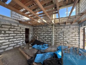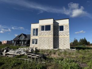1-02, Продается дом 156 кв.м. 2024 года постройки на участке 10 соток( ИЖС).Участок ровный сухой произведен дренаж.Дом построен из газобетона, стоит на утепленной шведской плите. Высота потолков -2,71 этаж Кухня-гостиная, прихожая, бойлерная, санузел.2 этаж- три спальни, санузел.Вода-скважина. Канализация- Юнилос-5. Элект-во.