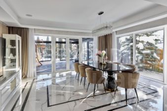 Предлагается к покупке трехэтажный дом 594,7 кв. м, с террасой 40 кв. м с панорамным остеклением, гаражом на три а/м и банным комплексом. Элегантный объект со стилистикой Ар-деко: много блеска, полутона природных красок, четкая геометрия каждого помещения. Баланс между металлом, деревом, камнем и стеклом. Место, где много света и воздуха.В доме 7 спален, 4 санузла, кабинет, гостиная-кухня-столовая, детские, кинотеатр, технические помещения и мансардная часть, куда выведены все инженерные узлы.Первый этаж единое пространство, в котором соединены гостиная с камином с отделкой из оникса, кухня и столовая с выходом на террасу. Кухня с итальянскими комплектующими и техникой Kuppersbusch. Зонирование делает особенно красивым сверкающие люстры и отделка камнем.Второй этаж это приватная зона. Пять спален. Большой холл с местами для хранения. Ванная комната с окном - 17,5 кв. м отделана мрамором и спроектирована так, чтобы всем было комфортно.Мастер-спальня с огромной кроватью от Fendi, брутальные лампы и мебель от Eichholtz. Стены спальни обшиты тактильно приятным текстилем. Мастер-гардеробная комната изыскана, функциональна и вместительна. Каждая из остальных спален индивидуальна. Они прекрасно подходят для разнополых детей различного возраста. Во всех спальнях дубовый паркет.Особое место в доме занимает кинозал на третьем этаже, где по проекту запланирован еще бильярд. Две гостевые спальни и санузел.Система кондиционирования и приточно-вытяжная вентиляция. Два водяных контура: первый отапливает дом, второй зону въезда. Отопление газовое.Банный комплекс из клееного бруса Honka с сауной, может рассматриваться, как гостевой дом. По внешнему периметру - система видеонаблюдения. В доме все коммуникации городские: электричество, газ, вода, канализация. На участке общей площадью 1200 кв. м сделан ландшафт и мощение.