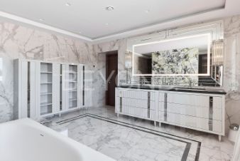 Предлагается к покупке трехэтажный дом 594,7 кв. м, с террасой 40 кв. м с панорамным остеклением, гаражом на три а/м и банным комплексом. Элегантный объект со стилистикой Ар-деко: много блеска, полутона природных красок, четкая геометрия каждого помещения. Баланс между металлом, деревом, камнем и стеклом. Место, где много света и воздуха.В доме 7 спален, 4 санузла, кабинет, гостиная-кухня-столовая, детские, кинотеатр, технические помещения и мансардная часть, куда выведены все инженерные узлы.Первый этаж единое пространство, в котором соединены гостиная с камином с отделкой из оникса, кухня и столовая с выходом на террасу. Кухня с итальянскими комплектующими и техникой Kuppersbusch. Зонирование делает особенно красивым сверкающие люстры и отделка камнем.Второй этаж это приватная зона. Пять спален. Большой холл с местами для хранения. Ванная комната с окном - 17,5 кв. м отделана мрамором и спроектирована так, чтобы всем было комфортно.Мастер-спальня с огромной кроватью от Fendi, брутальные лампы и мебель от Eichholtz. Стены спальни обшиты тактильно приятным текстилем. Мастер-гардеробная комната изыскана, функциональна и вместительна. Каждая из остальных спален индивидуальна. Они прекрасно подходят для разнополых детей различного возраста. Во всех спальнях дубовый паркет.Особое место в доме занимает кинозал на третьем этаже, где по проекту запланирован еще бильярд. Две гостевые спальни и санузел.Система кондиционирования и приточно-вытяжная вентиляция. Два водяных контура: первый отапливает дом, второй зону въезда. Отопление газовое.Банный комплекс из клееного бруса Honka с сауной, может рассматриваться, как гостевой дом. По внешнему периметру - система видеонаблюдения. В доме все коммуникации городские: электричество, газ, вода, канализация. На участке общей площадью 1200 кв. м сделан ландшафт и мощение.