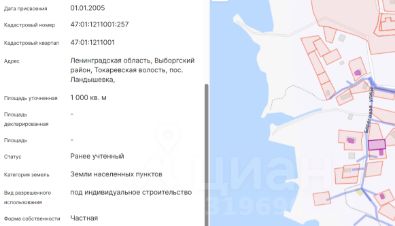 УЧАСТОК В ГОТОВОМ ПОСЁЛКЕ У ОЗЕРА ПИОНЕРСКОЕ И ПРЯМО ВОЗЛЕ ЛЕСА!РАСПОЛОЖЕНИЕ: 100 км от КАД Участок расположен в Выборгском районе ЛО, в готовом коттеджном поселке ''Сосновый Пляж'', на песчаном берегу озера Пионерское в окружении реликтовых лесов и природы Карельского перешейка. В ближайших населенных пунктах Ермилово и Красная Долина, расположенных в 10-ти минутах на авто, есть всё необходимое: магазин ''Магнит'', детские сады, ясли и школы, кафе, отделения почты и банков, больница, отделение скорой помощи, Храм Первоверховных Апостолов Петра и ПавлаИНЖЕНЕРИЯ и ИНФРАСТРУКТУРА: Электричество 15 кВт (по 861 Постановлению) Центральный водопровод (на ряде участков) Интернет КПП с фасадным ограждением Широкие дороги - асфальтная крошка, открытая система водоотведения Территория для отдыха на берегу озераУСЛОВИЯ ПОКУПКИ: Ипотека от ведущих банков по льготным программам Рассрочка от цены как при 100% оплате! Без % на первые 9 месяцев, возможность строительства сразу после заключения сделки Trade-in по рыночной стоимости с выходом на сделку от 1 недели Дополнительная выгода для покупателей из регионовГАРАНТИИ: Продажа напрямую от собственника, есть документы Реализацией проекта занимается компания ''ФАКТ.'' Сервисная компания оказывает содействие в решении всех вопросов после покупки участкаНужен участок меньшей или большей площади? Звоните прямо сейчас и мы подберем его для вас среди своих участков! 5 районов застройки в ЛО Участки в окружении леса и озёр Покупка напрямую у собственника участкаВОЗМОЖНА ОНЛАЙН-ПРЕЗЕНТАЦИЯ Домовладение 26. Кадастровый номер: 47:01:1314001:1988