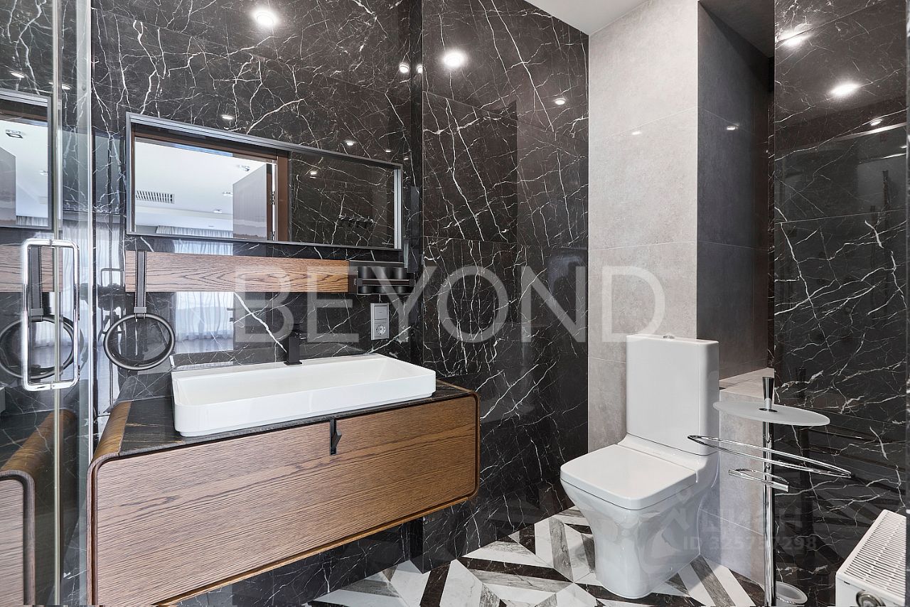 Предлагается к покупке трехэтажный дом 594,7 кв. м, с террасой 40 кв. м с панорамным остеклением, гаражом на три а/м и банным комплексом. Элегантный объект со стилистикой Ар-деко: много блеска, полутона природных красок, четкая геометрия каждого помещения. Баланс между металлом, деревом, камнем и стеклом. Место, где много света и воздуха. В доме 7 спален, 4 санузла, кабинет, гостиная-кухня-столовая, детские, кинотеатр, технические помещения и мансардная часть, куда выведены все инженерные узлы. Первый этаж единое пространство, в котором соединены гостиная с камином с отделкой из оникса, кухня и столовая с выходом на террасу. Кухня с итальянскими комплектующими и техникой Kuppersbusch. Зонирование делает особенно красивым сверкающие люстры и отделка камнем. Второй этаж это приватная зона. Пять спален. Большой холл с местами для хранения. Ванная комната с окном - 17,5 кв. м отделана мрамором и спроектирована так, чтобы всем было комфортно. Мастер-спальня с огромной кроватью от Fendi, брутальные лампы и мебель от Eichholtz. Стены спальни обшиты тактильно приятным текстилем. Мастер-гардеробная комната изыскана, функциональна и вместительна. Каждая из остальных спален индивидуальна. Они прекрасно подходят для разнополых детей различного возраста. Во всех спальнях дубовый паркет. Особое место в доме занимает кинозал на третьем этаже, где по проекту запланирован еще бильярд. Две гостевые спальни и санузел. Система кондиционирования и приточно-вытяжная вентиляция. Два водяных контура: первый отапливает дом, второй зону въезда. Отопление газовое. Банный комплекс из клееного бруса Honka с сауной, может рассматриваться, как гостевой дом. По внешнему периметру - система видеонаблюдения. В доме все коммуникации городские: электричество, газ, вода, канализация. На участке общей площадью 1200 кв. м сделан ландшафт и мощение.