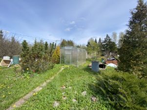В уютном обжитом садоводстве продаётся земельный участок с домом. По документам участок 6,3 сотки. По факту намного больше, т.к. участок с одной стороны не имеет соседей. На участке плодовые деревья и две крепкие теплицы из поликорбаната. Дом щитовой, две комнаты, веранда. На чердаке можно оборудовать ещё комнату. Домик крепкий, сухой. Межевание сделано. Садоводство оборудовано шлагбаумом. Отличные соседи. В посёлке несколько магазинов, почта.Арт. 124614900