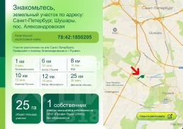 Продажа уникального земельного участка 10 000 кв.м. (из участка общей площадью 7,71 Га) расположенного по адресу: Санкт-Петербург, поселок Шушары, отд.Бадаевское, участок 132, в 3,5 км до КАД на въезде в город.ОПИСАНИЕ УЧАСТКА: Правовой статус - собственность.Категория земель - Земли населённых пунктов.Вид разрешенного использования - для сельскохозяйственного использования (оставлена сельхозка для минимизации налогообложения, меняется в нужный ВРИ по заявлению в течении 1 месяца).Примыкание к дороге - 1-я линия Московское шоссе, на стороне выезда из СПб, в 3,5 км от КАД.Коммуникации рядом.Размеры участка: 65 метров (по фасаду) х 154 метров.По принятому в конце 2023 года новому Генплану Санкт-Петербурга зона П1.По принятому в декабре 2025 года ПЗЗ - Общественно-деловая зона (ТП2).Кадастровый номер участка: 78:42:1511501:133.ПРЕИМУЩЕСТВА:- Земельный участок находится 3,5 км до КАД, на въезде в город.- 1-й линия федеральной автомобильной трассы - Московское шоссе- Высокий автомобильный трафик- Участок ровный, сухой, правильной формы,- Въезды - согласован заезд и съезд на участок с Московского шоссе в начале и в конце продаваемого участка.ОСНОВНЫЕ ВИДЫ ИСПОЛЬЗОВАНИЯ:Склады, Производственная деятельность, Тяжелая , легкая, автомобильная, пищевая промышленность, Хранение автотранспорта,Автомойки, Ремонт автомобилей, Стоянка транспортных средств, Складские помещения, Оборудованные площадки для занятия спортом, УДС, Благоустройство территории.Условно разрешенные виды использования: Общежития, Бытовое обслуживание, Деловое управление, Магазины, Общественное питание, Заправка транспортных средств, Обеспечение занятий спортом в помещении.Звоните, буду рад ответить на все имеющиеся у Вас вопросы!