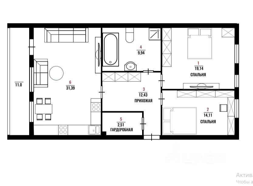 43 м² · Этаж 6 из 9