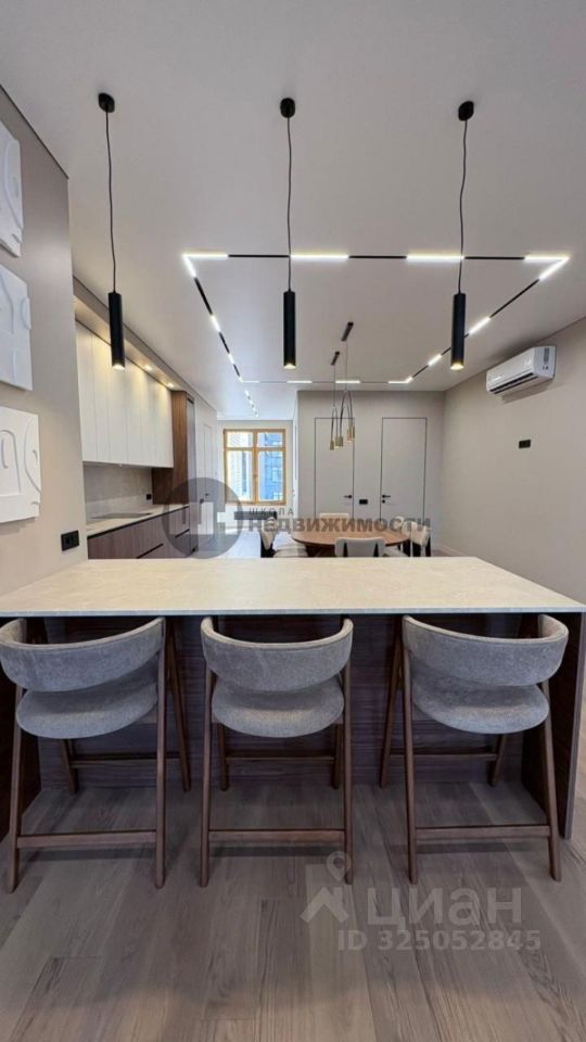Уютная и просторная квартира будет готова к заселению до Нового Года! Общая площадь 157.40 кв.м. и кухней-гостинной почти 100 кв.м. Уникальный дизайнерский ремонт создает уютную и стильную обстановку, которая непременно Вам понравится. Мебель и техника установлены премиальных брендов. Эта квартира идеально подойдет для семей с детьми, так как рядом расположены детские сады, школы и развлекательные центры. Если вы молоды и активны, то это тоже прекрасный вариант для вас - местность пестрит различными культурными и развлекательными заведениями, среди которых драматический театр и центр отдыха. при этом имеет все необходимое для комфортного проживания. Рядом со зданием расположены магазины, аптеки, кафе и другие объекты социальной инфраструктуры, что делает жизнь там максимально удобной и комфортабельной. 1 паркинг входит в стоимость аренды квартиры, второй можно арендовать за 10 000 руб. Не упустите возможность стать счастливым в новой квартире в этом году! Звоните прямо сейчас и запишитесь на просмотр. Номер объекта: #1/579730/24116