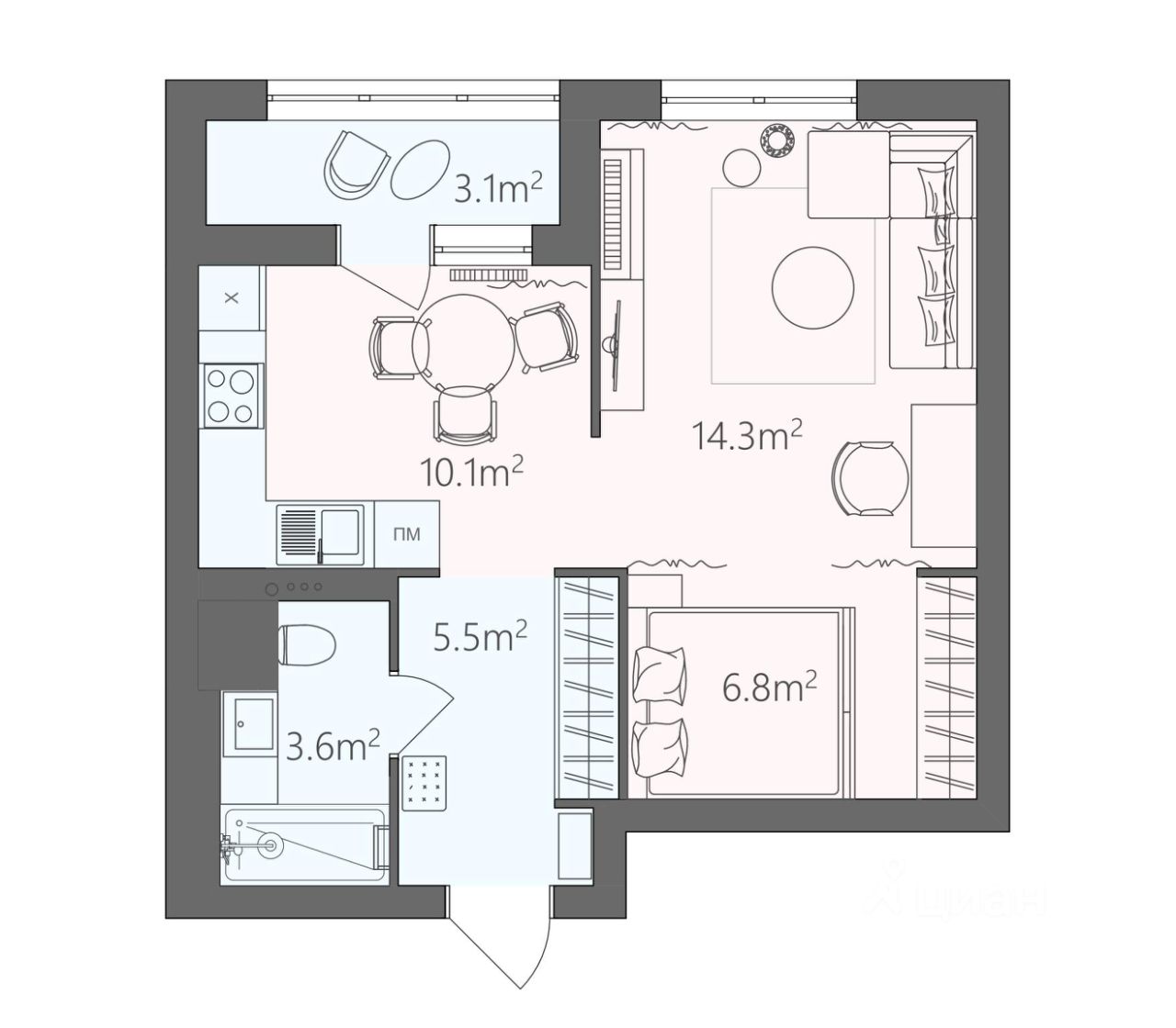 52 м² · Этаж 6 из 16