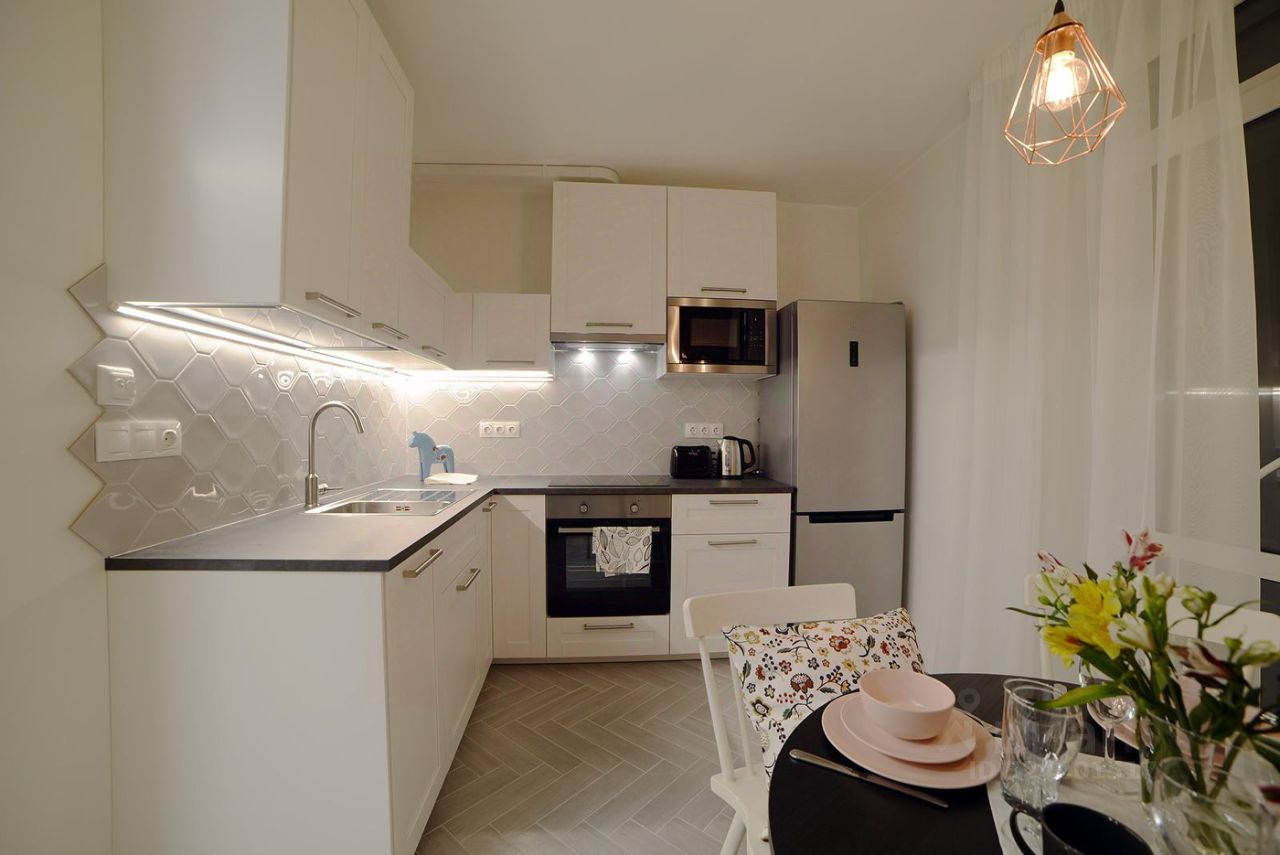 Арт. 94846999 Предлагается в аренду на длительный срок светлая и стильная евротрешка в жилом комплексе ''Аmster''. Выполнен дизайнерский ремонт. Благодаря грамотной планировке, квартира очень комфортная и удобная. Панорамные окна, из которых можно любоваться всеми городскими салютами, не выходя из дома. По всему периметру квартиры установлены плотные шторы, кондиционер и полы с подогревом. Полностью меблирована и технически оснащена. Стиральная машина , холодильник,посудомоечная машина, микроволновая печь, духовка, кофемашина, чайник, робот пылесос и мн.др. В квартире установлена система ''умный дом''. В спальне находится большой телевизор, а в ванной — аудиосистема. Подземный паркинг. Закрытая территория, а также видеонаблюдение. Развитая инфраструктура района обеспечивает жителям высокий уровень комфорта. Здесь есть всё необходимое для повседневной жизни: детские сады, школы, магазины и другие важные учреждения. Все достопримечательности в шаговой доступности. Юнтоловский лесопарк, Набережная реки Глухарки, Парк 300-летия Санкт-Петербурга и др. Удобная транспортная развязка. До ЗСД минута езды. В непосредственной близости идёт строительство станции метро ''Богатырская''.