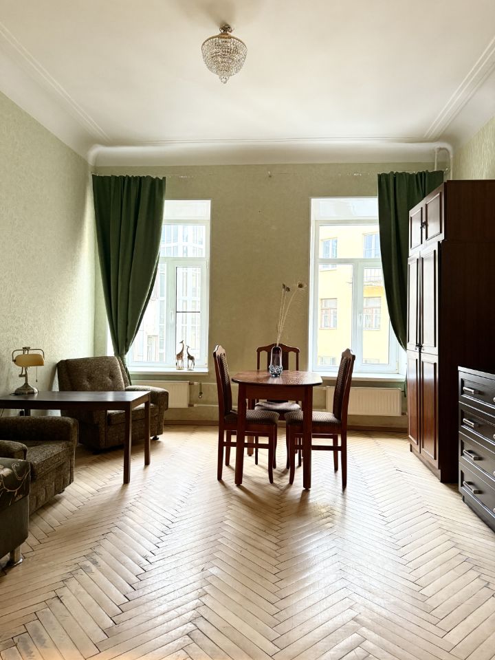 Сдается на длительный срок стильная и уютная 1-комнатная квартира в Калининском районе. Тихий дом с видом на внутренний двор. Высокие потолки, деревянный паркет ёлочка создают особую атмосферу — простор, свет и тепло. Характеристики: Полностью меблирована: обеденный стол с четырьмя стульями, мягкая зона (диван, кресла), шкафы. Телевизор имеется, можно настроить под личные нужды. Большие окна во двор — спокойствие, отсутствие шума проезжей части. Ванная комната с ванной и душем, кафельные стены, сантехника в хорошем состоянии. Уютная кухня с кухонной мебелью, рабочей поверхностью и холодильником. Прихожая с местом для хранения (шкаф / вешалка). Преимущества: Тихое расположение — окна выходят во двор, Прекрасная планировка — легко зонировать пространство под жилую и рабочую зону, Полностью готова к проживанию — не нужно докупать базовую мебель, Классический стиль, деревянный пол, хорошее качество материалов. Условия аренды: - Коммунальные платежи оплачиваются отдельно - Залог: 100% - Минимальный срок аренды: 11 мес. - Можно с детьми и мелкой породой собак.