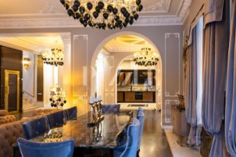 Арт. 126507644 Предлагается в долгосрочную аренду роскошный 3-х этажный особняк в неоклассическом дворцовом стиле с итальянским лифтом и стеклянной шахтой, который расположен в элитном дворцово-парковом ансамбле ''Северный Версаль'' в 15 минутах от города. Этот дом - настоящее произведение искусства, в котором хочется жить и наслаждаться видами из панорамных окон. Поселок охраняемый и находится в экологически чистом районе Санкт-Петербурга, на берегу озера ''Лахтинский разлив''. Престижное окружение - все дома в поселке выполнены в классическом стиле, эклектике. Внутренняя отделка выполнена из натуральных материалов - камень различных пород, ценные породы дерева, оригинальная лепнина, дизайнерская мебель по индивидуальном заказу. Войдя во владение, вы попадаете в прихожую круглой формы ротонду, далее следует холл с кессонированными потолками и дизайнерским декором, он плавно направляет вас в уютную современную итальянскую кухню-гостиную, расположенную на первом этаже. Также на первом этаже расположены: гостевая комната, санузел, гардеробная и прачечная. В гостиной есть выход на террасу и ухоженный участок, где располагается французский сад с фонтаном и архитектурной нишей, в которой размещены скульптуры древнегреческих Нимф. Ландшафтный дизайн участка выполнен во французском стиле, которому характерны симметрия, аккуратные линии и упорядоченность. Сад украшен вечнозелеными туями, мощеными дорожками, кустарниками, дополнен современными элементами. На участке установлены фонари, выполненные в классическом стиле. От дома до центра Петербурга вы можете добраться за 25 минут, выезд на ЗСД в 5-ти минутах. На втором этаже расположена главная мастер-спальня с гардеробной и ванной комнатой. Напротив мастер-спальни находится просторный кабинет в классическим стиле с действующим антикварным камином и керамическими изразцами. Третий этаж включает: две спальни, каждая с ванной комнатой и гардеробной, одна из которых имеет выход на террасу, где открывается потрясающий вид на Лахту и окрестности. Мебель, расположенная в спальных комнатах уникальна, она выполнена из натурального шпона и декорирована особым видом обработки дерева интарсией. Такой вид материала долговечен и прочен, а поэтому особо ценен. - В пешей доступности находятся железнодорожная станция ''Лахта'', ТРК ''Гарден-Сити'' с фитнес-клубом ''Fitnеss Ноusе'', рестораны и химчистка. - Рядом универсам ''Лэнд'' и гипермаркет ''ОВI''.