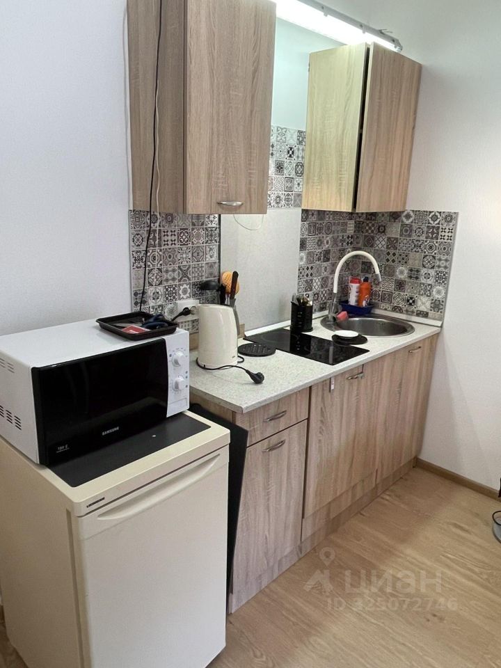 Квартира в отличном состоянии. Ремонт от застройщика. В квартире есть диван, стол, холодильник, стиральная машина, чайник, настольная плита.