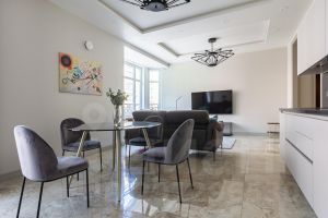 Предлагаем в аренду с 10 января до 30 апреля 2026 г. эксклюзивную квартиру с видом на Марсово Поле по адресу: наб.р. Мойки д.1! Метро Невский проспект в пешей доступности.Дом расположен в красивейшем месте Петербурга, рядом с уникальными архитектурными ансамблями и культурными достопримечательностями города, квартира располагается в доме Адамини. Общая площадь 104 кв. м. Просторная гостиная, две изолированные спальни, кабинет. Ванная комната и су раздельные.Есть хоз.комнаты. Кухня укомплектована всей техникой. Уникальный интерьер и антикварная мебель! Пол паркет , камин.Просмотры в любое удобное для Вас время по предварительной договоренности.Предоплата за 1 месяцЗалог 130 000 ₽