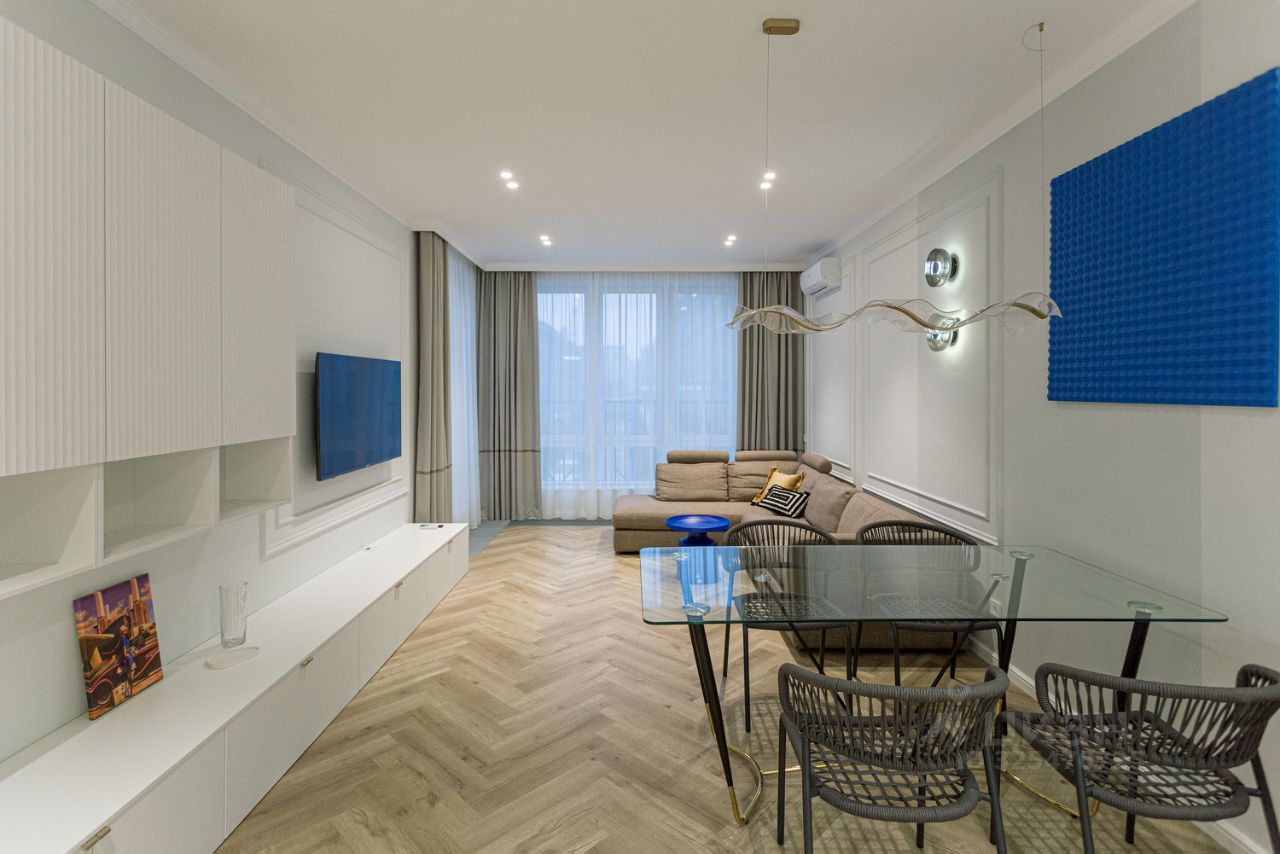 ЖК ''The One'' (''Зе Ван''): о комплексеЖК ''The One'' (в русском варианте нередко именуется ''Зе Ван'') — премиальный дом на Петровском острове в СанктПетербурге. Проект реализует девелопер Setl Group. Ключевые особенности комплекса: Локация. Первая линия Малой Невы: персональный выход на набережную, панорамные виды на воду и город. В 10 минутах пешком — парк Крестовского острова, 1015 минут на автомобиле до Дворцовой площади и выезда на ЗСД. Формат. Дом высотой 8 этажей в форме каре с закрытым внутренним двором. Минимальное число квартир на этаже — для создания уединённой среды единомышленников. Архитектура. Современная трактовка петербургских стилей: терракотовые панели в светлых тонах, витражное тёплое остекление, художественная подсветка вечером. Безопасность и сервис. Контроль доступа по индивидуальной карте, видеонаблюдение с полной зоной покрытия, ресепшен 24/7, круглосуточная охрана. Благоустройство. Закрытый двор с ландшафтным дизайном: уединённые зоны отдыха, декоративное озеленение, комфортное уличное освещение. Релаксзона с беседками, видовой террасойсолярием и выходом на променад вдоль Невы. Инфраструктура. Подземный паркинг, парадное лобби с зеркальными стенами и изысканной иллюминацией, зона отдыха в холле, помещения для колясок и велосипедов, бесшумные лифты до паркинга. Инженерные решения. Станция глубокой очистки воды, индивидуальный тепловой пункт для авторегулировки температуры, сплитлоджии для кондиционеров на каждом этаже. Квартира в арендуВ ЖК ''The One'' предлагается к аренде стильная квартира с дизайнерской отделкой. Пространство воплощает концепцию рационального использования каждого квадратного метра: продуманная планировка позволяет комфортно зонировать площадь и реализовать индивидуальные идеи обустройства. Что вы получите: Эстетика и качество. Авторский интерьер с использованием премиальных материалов, элегантная цветовая гамма, гармоничное сочетание фактур. Комфорт проживания. Полностью меблирована, оснащена современной бытовой техникой. Панорамные окна и витражное остекление наполняют помещение светом и открывают впечатляющие виды на Малую Неву. Функциональность. Выверенная расстановка мебели, продуманные системы хранения, удобное размещение технических зон. На верхних этажах возможны просторные открытые террасы с ударопрочным прозрачным ограждением — без преград для панорам. Атмосфера премиального жилья. Тишина и уединённость клубного дома, сервис уровня пятизвёздочного отеля, безупречная чистота и порядок в местах общего пользования. ЖК ''The One'' — это не просто квартира, а стиль жизни: близость к воде, приватность, высочайший уровень комфорта и сервиса в одном из самых престижных локаций Петербурга. Заезд с 23.12! Звоните и мы назначим показ в удобное время!