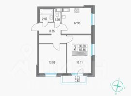 2-к, Коломяжский проспект, 15 корп. 2 Показать на карте