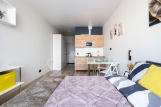 Сдается на длительный срок стильная и функциональная студия в современном апарт-отеле ''Ладожский Авенюр''. Пространство грамотно организовано: здесь предусмотрена зона отдыха с дополнительным спальным местом, обеденная группа и совмещенная ванная комната с душевой кабиной. Квартира полностью готова к заселению, оборудована всей необходимой мебелью и качественной бытовой техникой. Объект предлагает не только комфортное жилье, но и комплекс сервисов бизнес-класса. Территория находится под круглосуточной охраной с видеонаблюдением и контролируется службой ресепшена. В здании расположено современное лобби с комфортабельной зоной для отдыха и работы. Ключевым преимуществом является отличная транспортная доступность: станции метро ''Ладожская'' и ''Новочеркасская'' находятся в 12 и 18 минутах пешком соответственно, в 13 минутах ходьбы — Ладожский вокзал. До центра города можно добраться за 20 минут на общественном транспорте, а выезд на КАД занимает около 15 минут. В шаговой доступности расположены крупные торгово-развлекательные центры ''Заневский Каскад'' и ''Охта Молл'', три фитнес-клуба, а также многочисленные рестораны и кафе для повседневных нужд и досуга.Пишите звоните. Оплата комиссии доступна в рассрочку!Код пользователя: 161597Номер в базе: 10664838Предоплата за 1 месяцЗалог 42 000 ₽