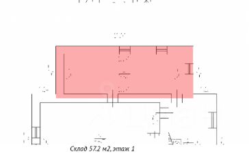 Сдается отапливаемый склад 57.2 кв. м на первом этаже двухэтажного здания. В помещении пол выложен плиткой, проведены электричество, водоснабжение, отопление. Есть возможность провести высокоскоростной интернет. Высота потолка: 4,16 м. Требуются косметический ремонт. Есть круглосуточная охрана, пропускной режим на террритории. На территории расположены комфортная столовая и оборудованная парковка.